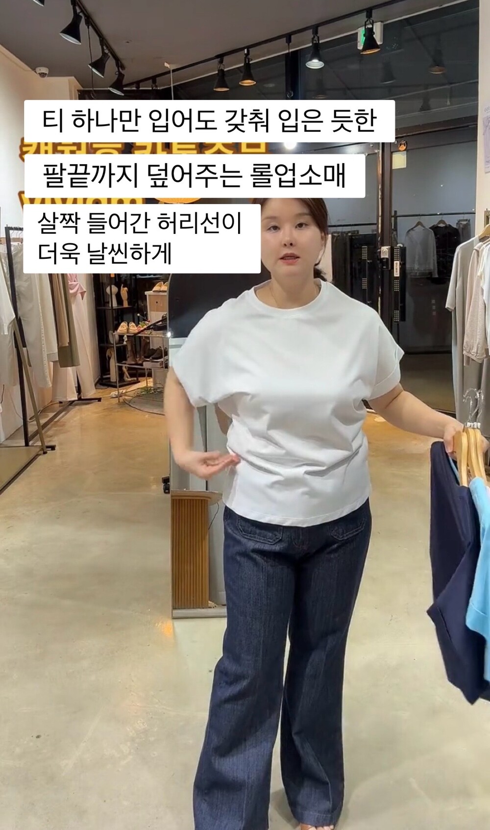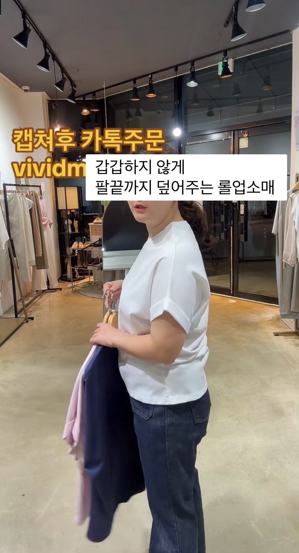 사이즈 팁-롤업 소매로 팔뚝을 끝까지 덮어