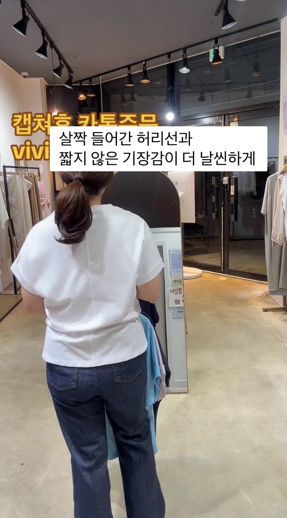 짧지 않은 기장감이 더욱 날씬하게 연출됩니다.