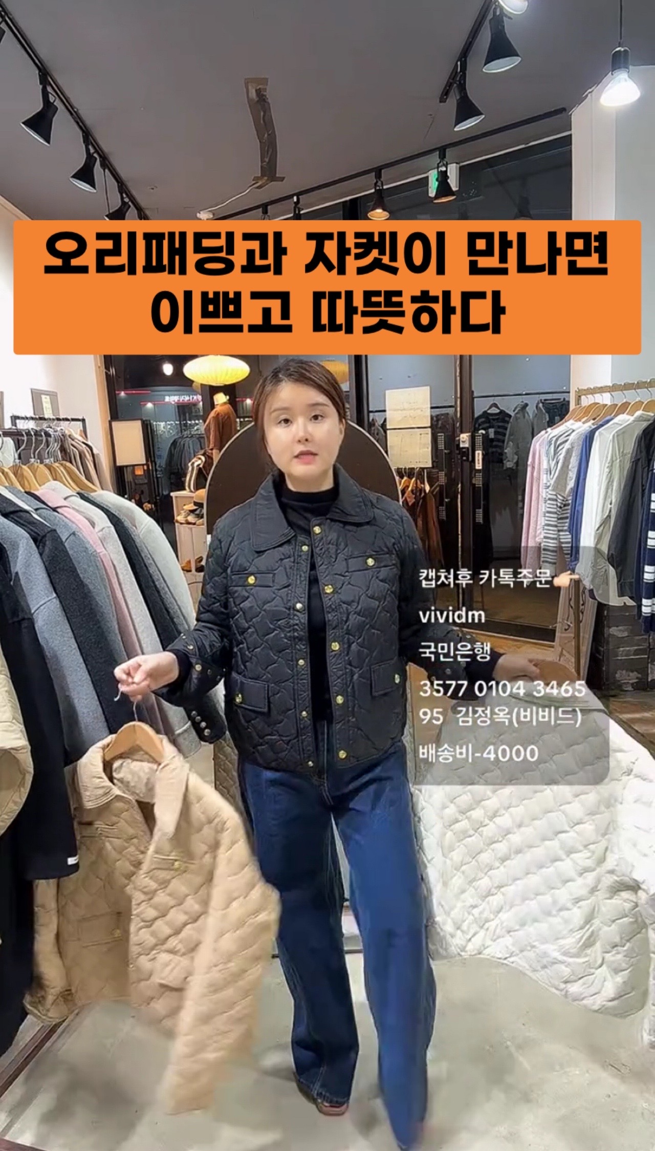 원단-적당한 광택감이 느껴지는 겉감과 오리털 충전제로 가볍고 따뜻하게 착용됩니다.(오리 솜털,깃털 혼용)