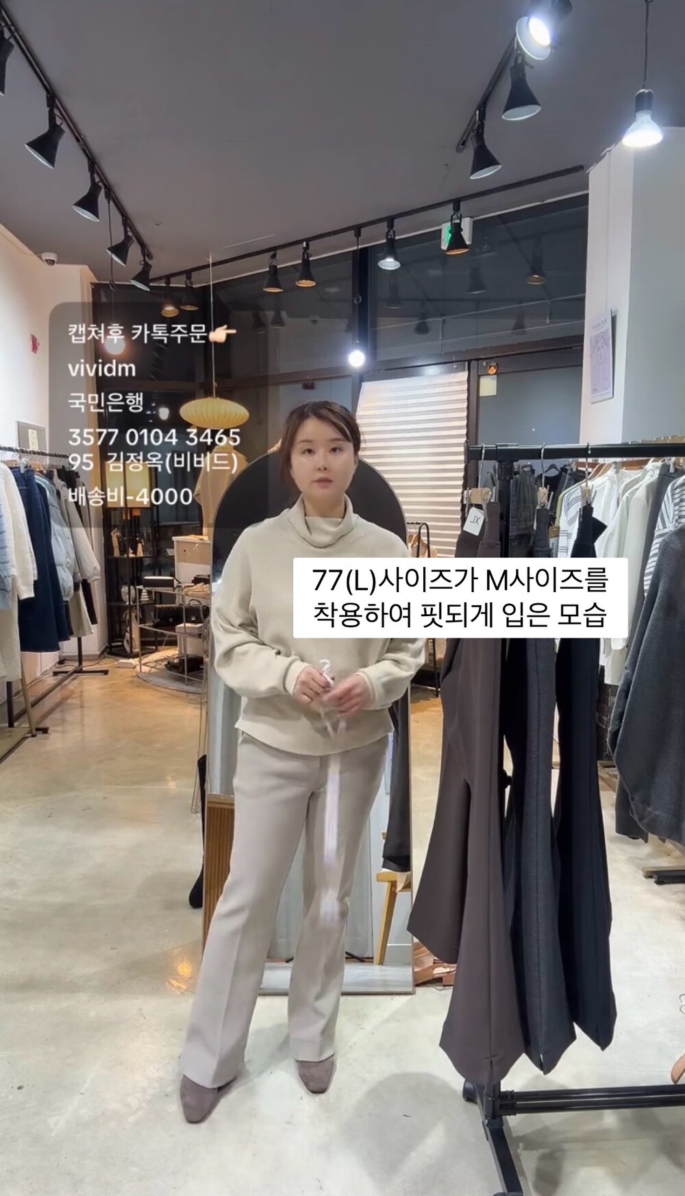 몸무게62kg 키159cm 상하의 정사이즈 77(L) 를 착용