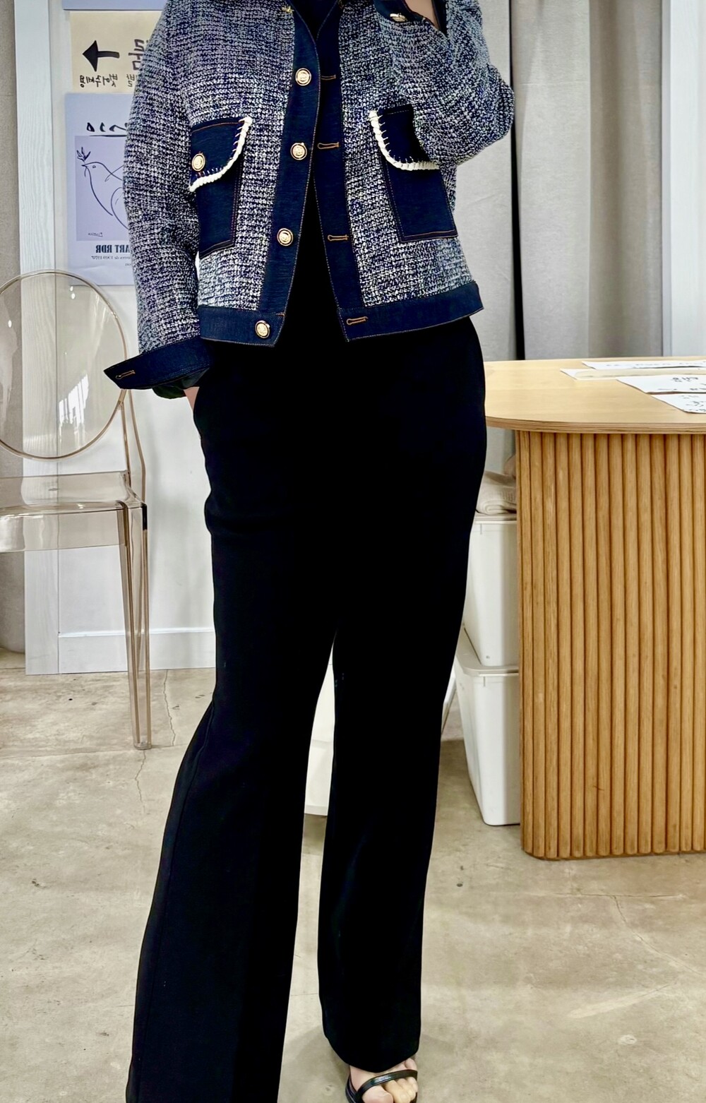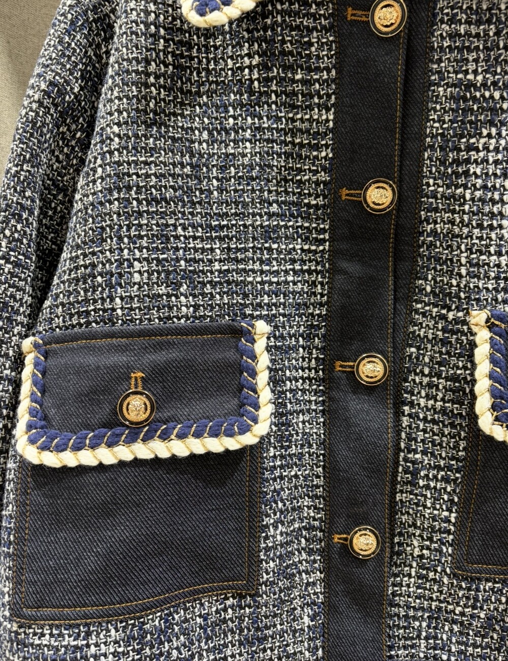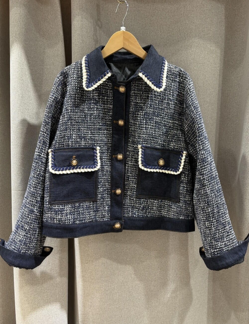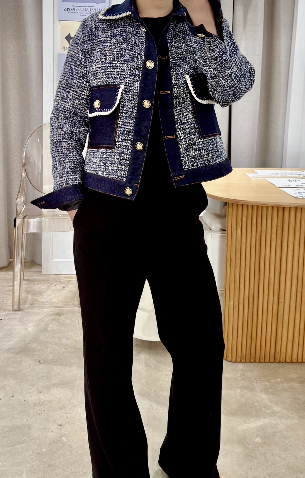 진트위드 자켓 사이즈-크롭한 기장의 진과 트위드가 믹싱된 자켓으로 원단 자체의 텐션이 있어