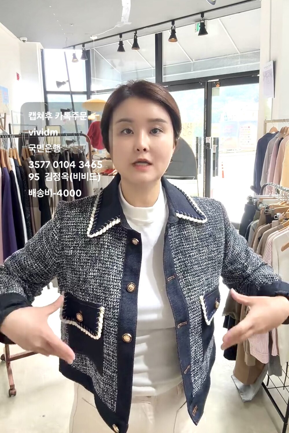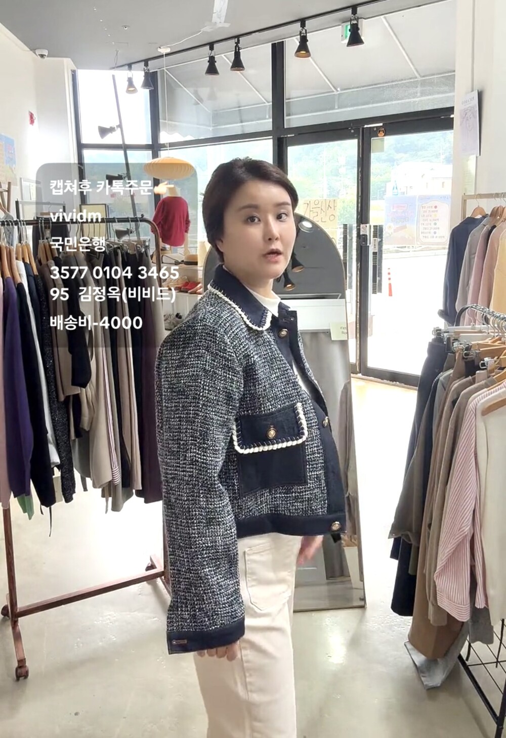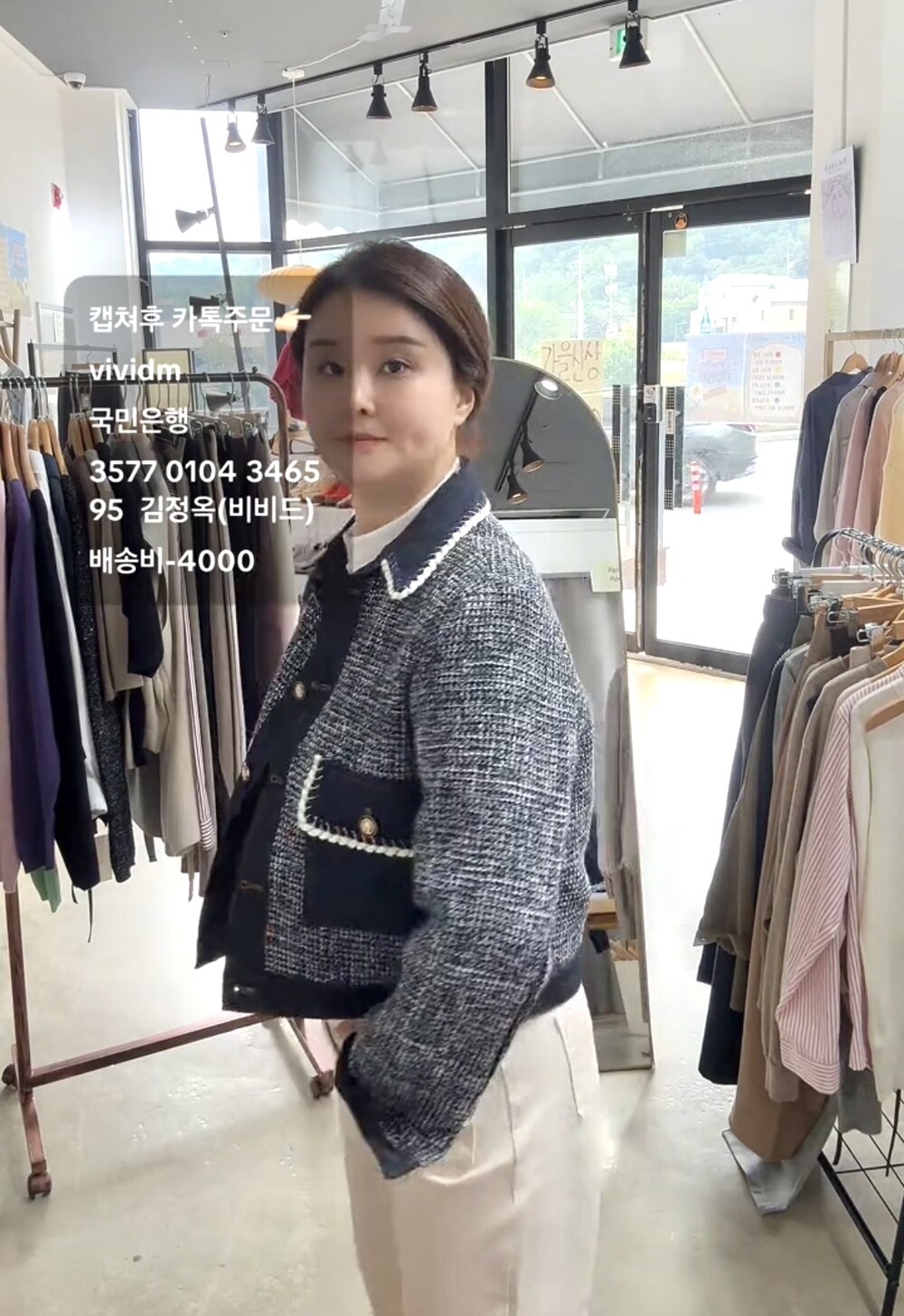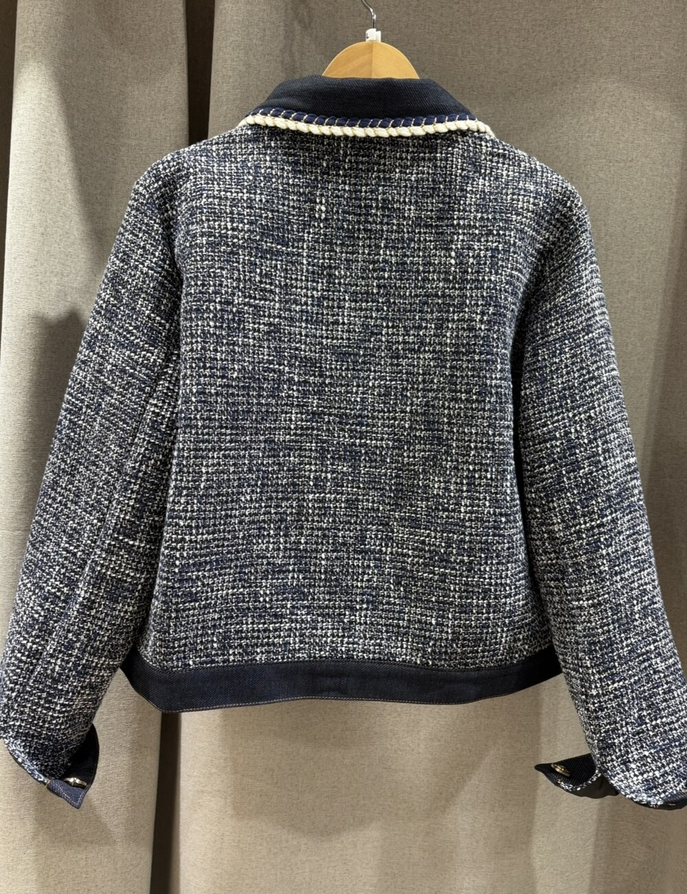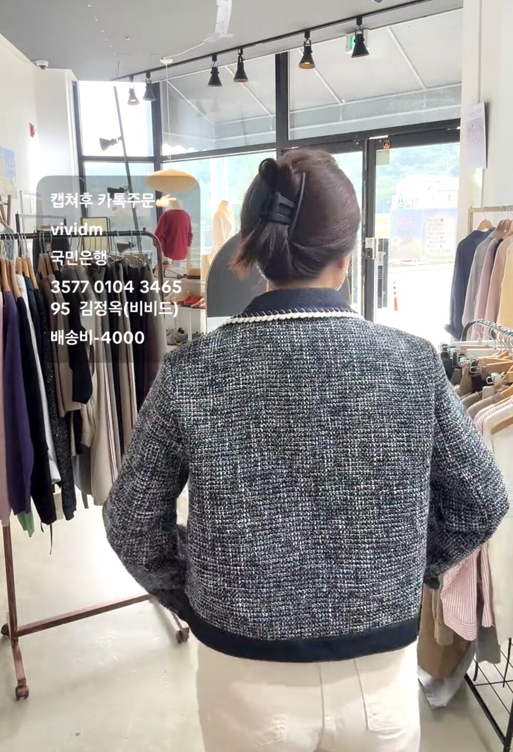 진트위드 자켓 사이즈-크롭한 기장의 진과 트위드가 믹싱된 자켓으로 원단 자체의 텐션이 있어