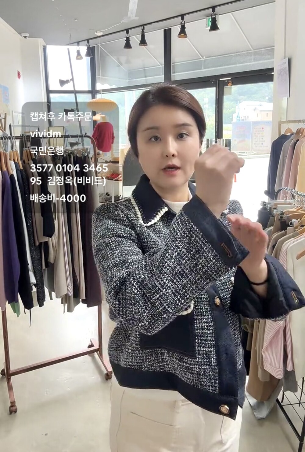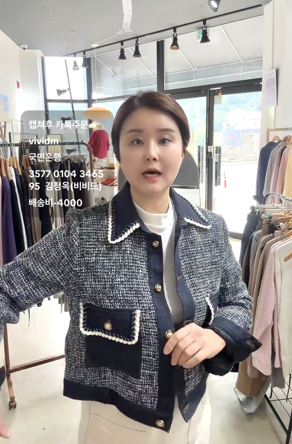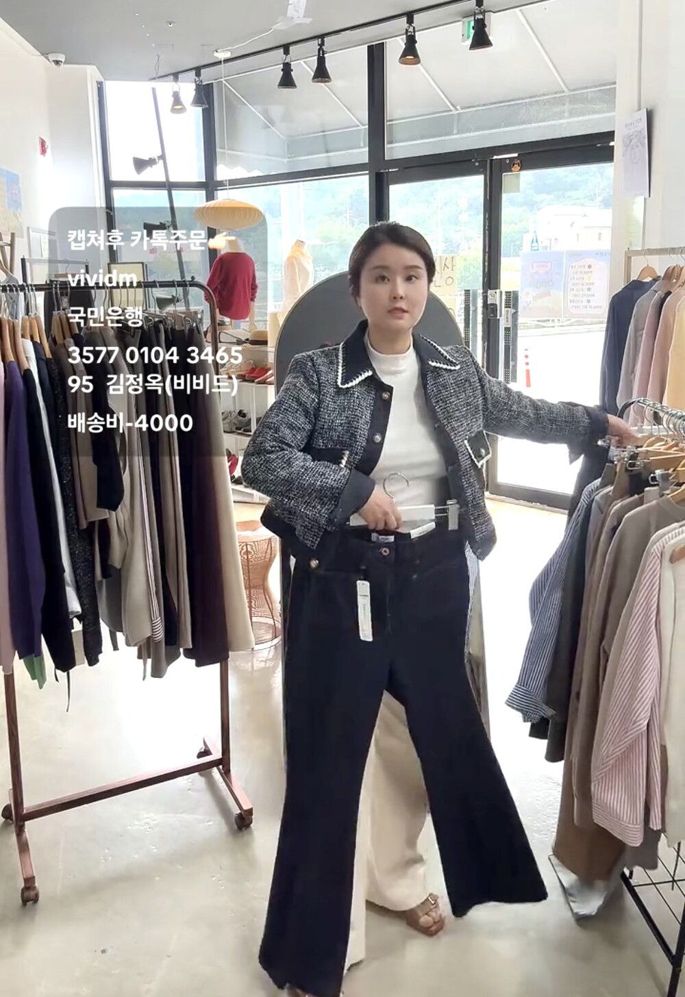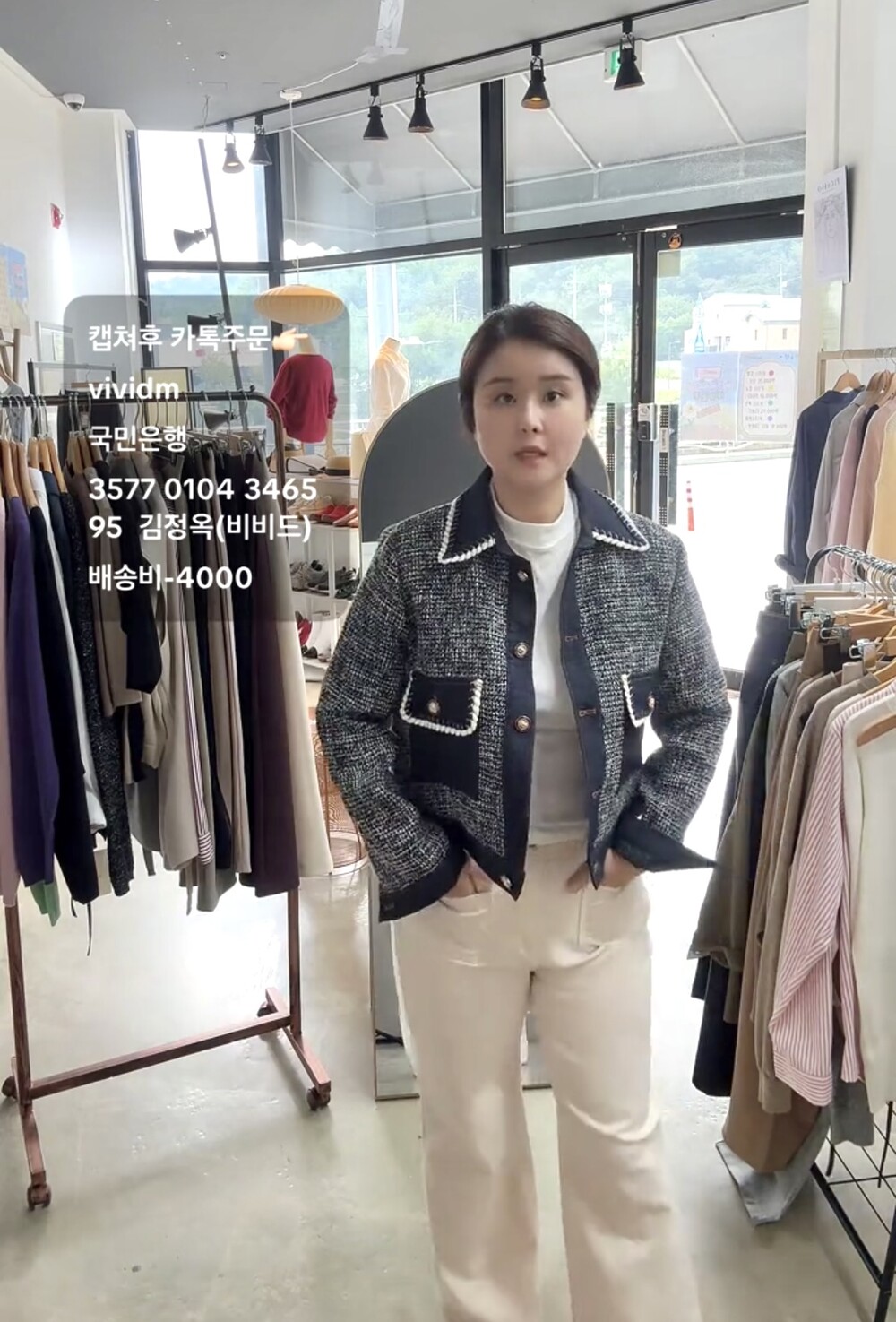 진트위드 자켓 사이즈-크롭한 기장의 진과 트위드가 믹싱된 자켓으로 원단 자체의 텐션이 있어