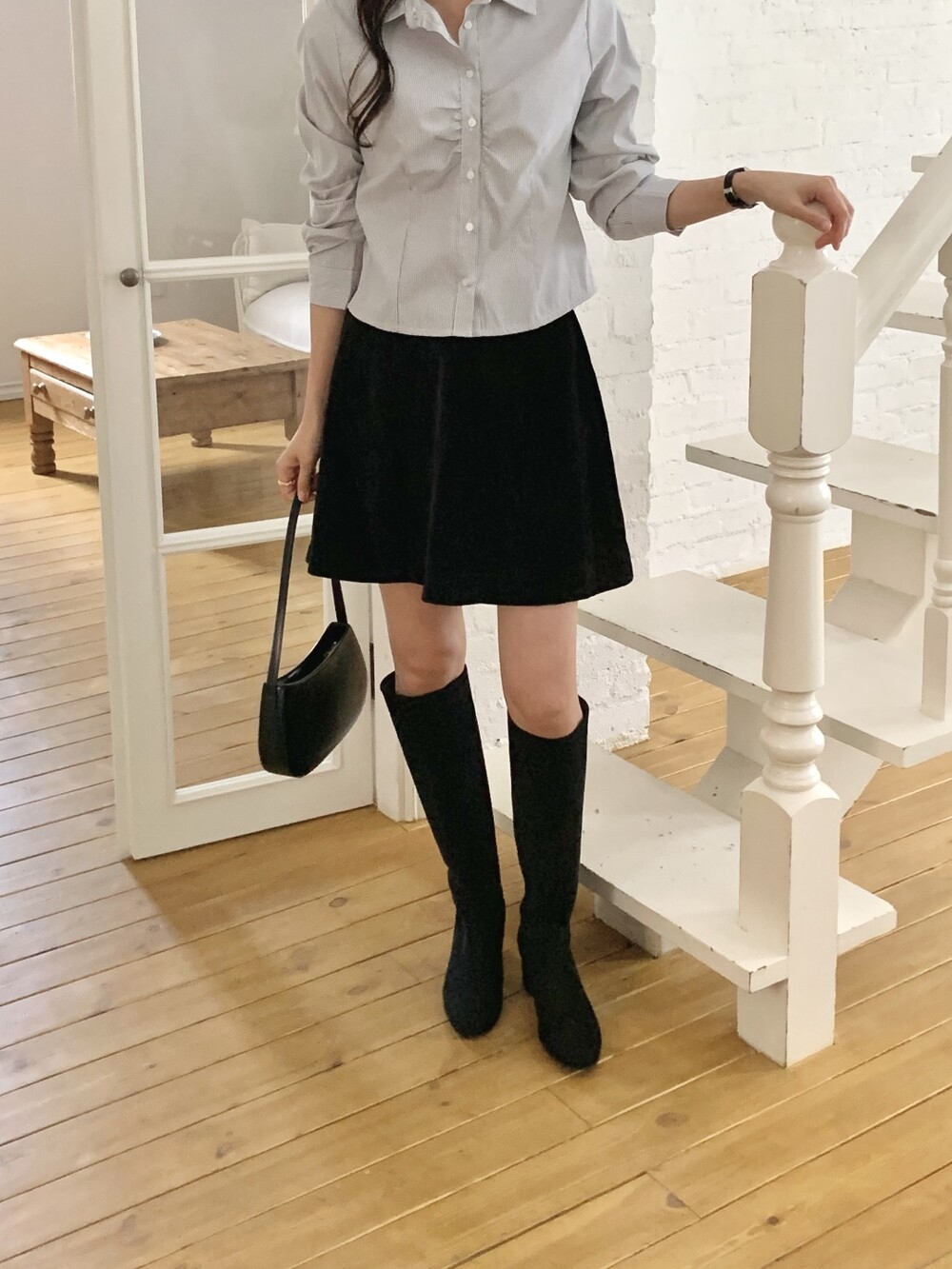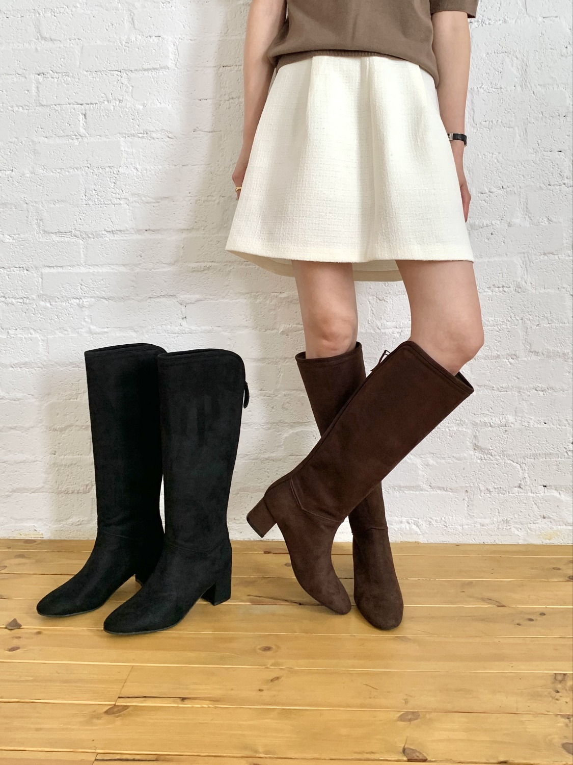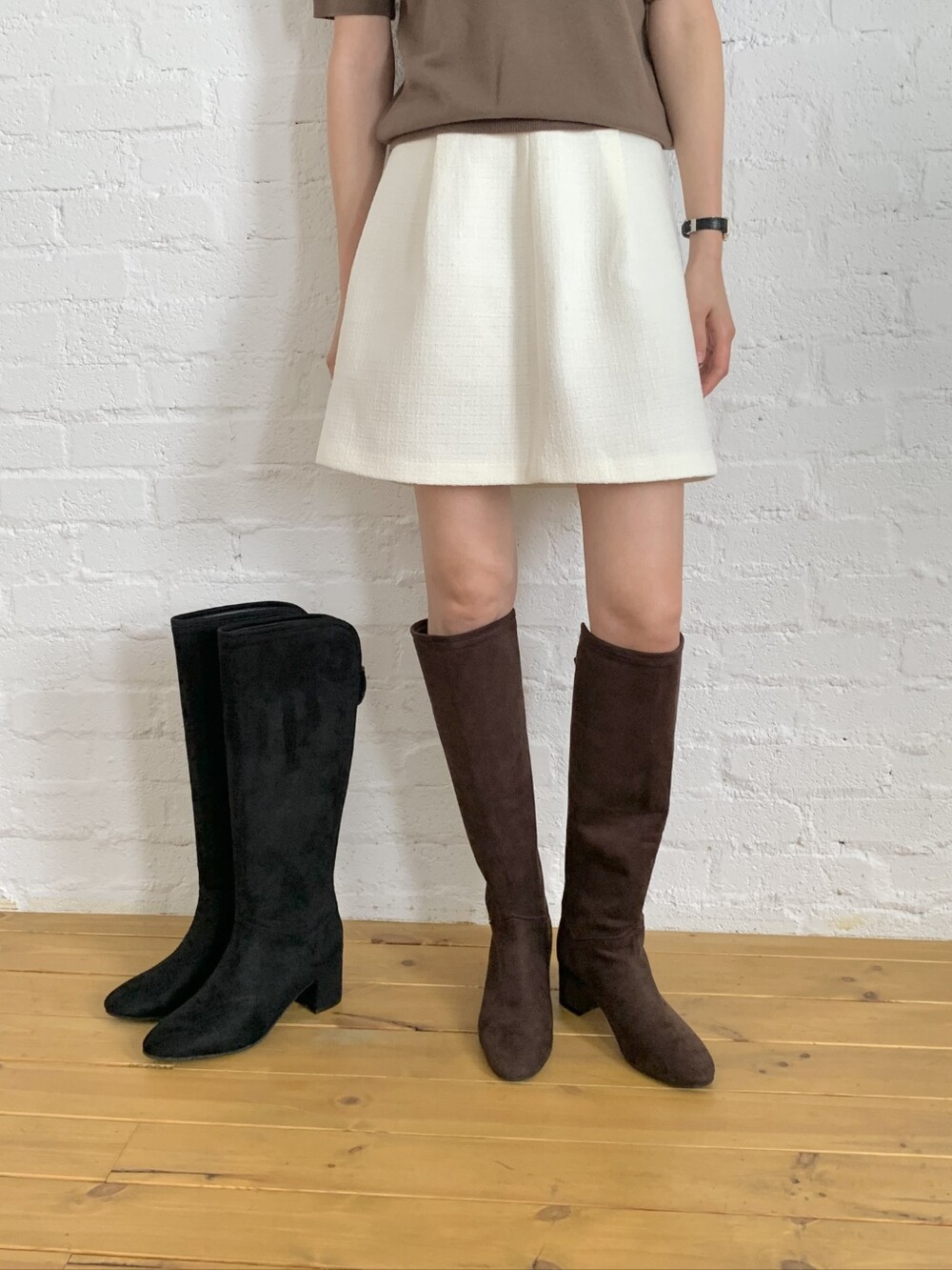 사이즈 팁-여유롭고 자연스런 핏으로 종아리가 끼이지 않아요. 정사이즈로 신어주세요.