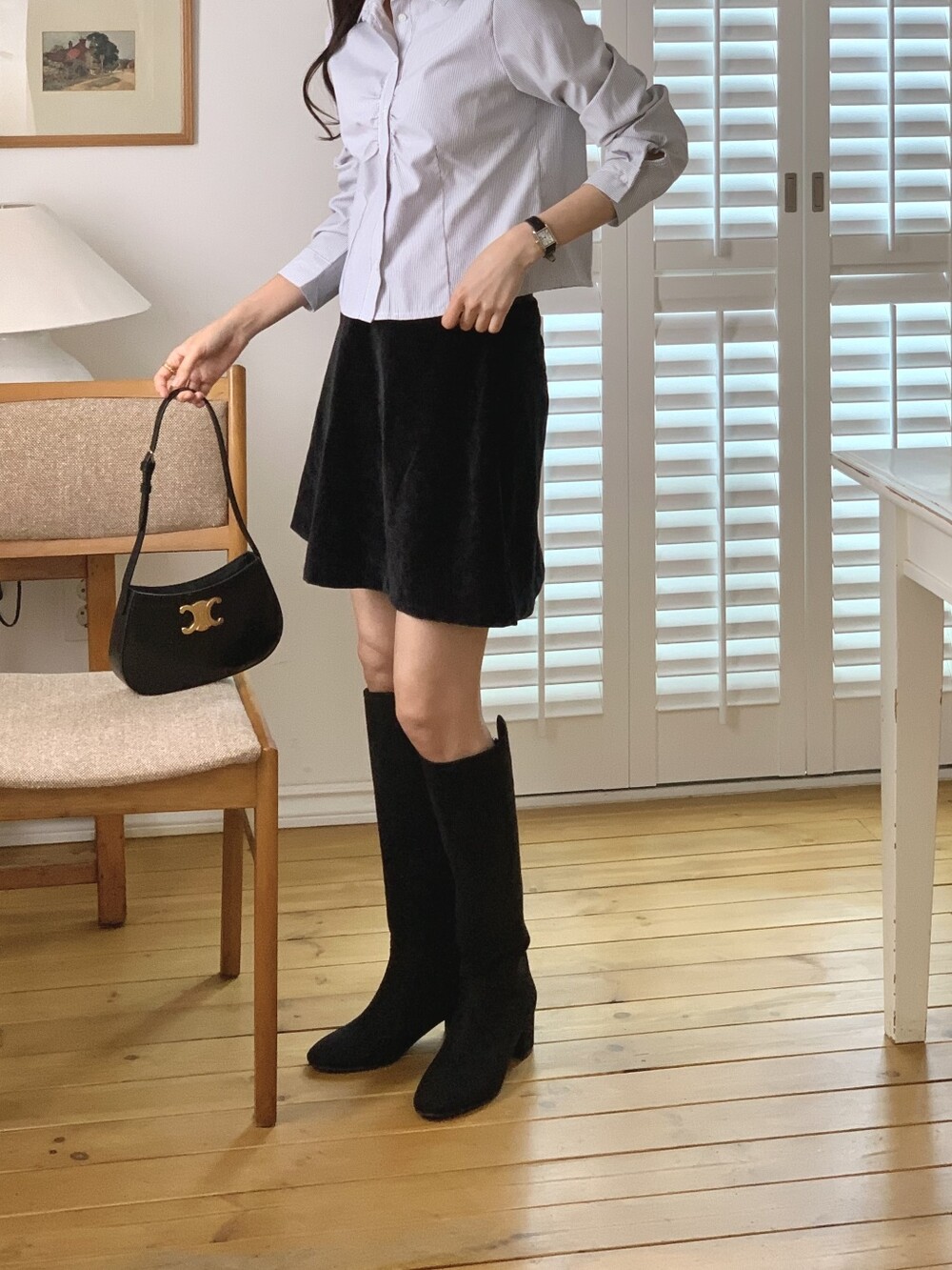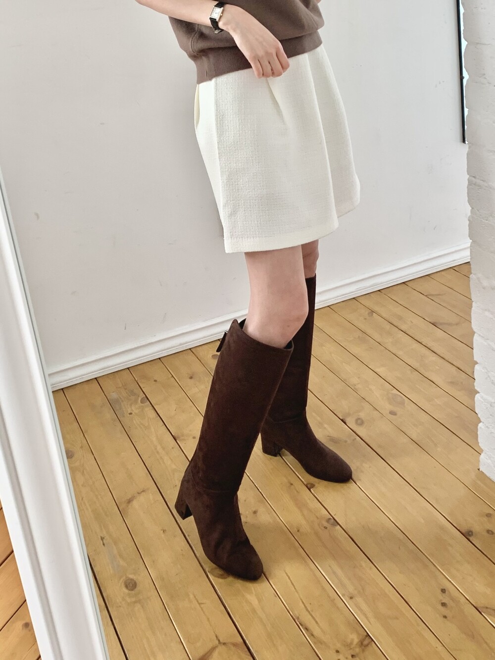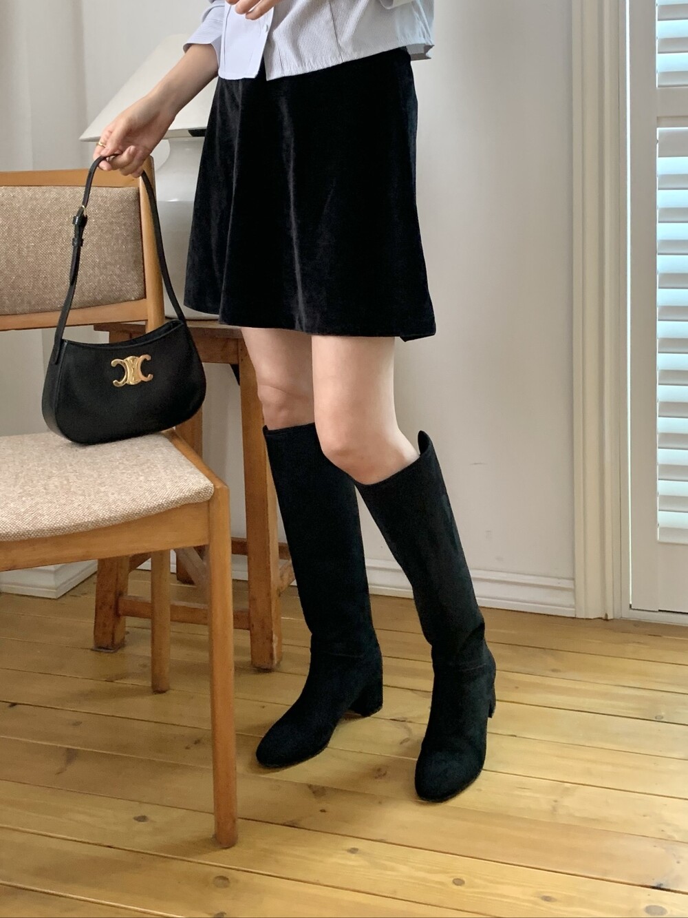 사이즈 팁-여유롭고 자연스런 핏으로 종아리가 끼이지 않아요. 정사이즈로 신어주세요.