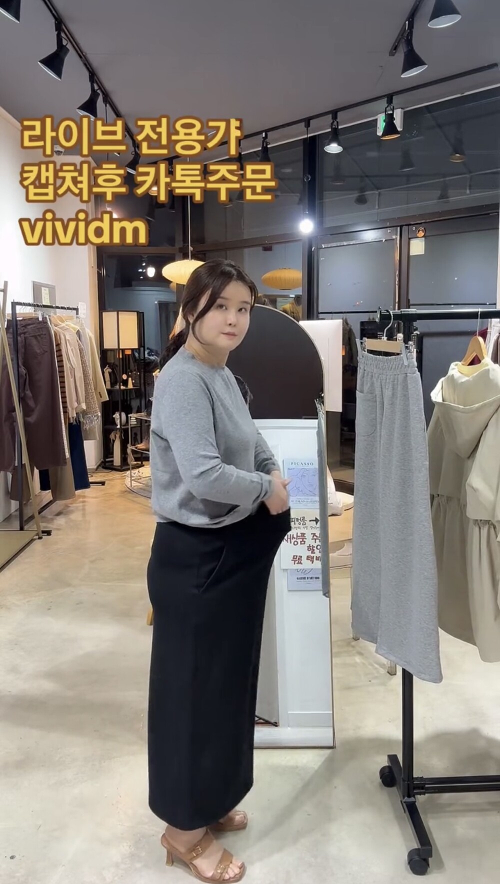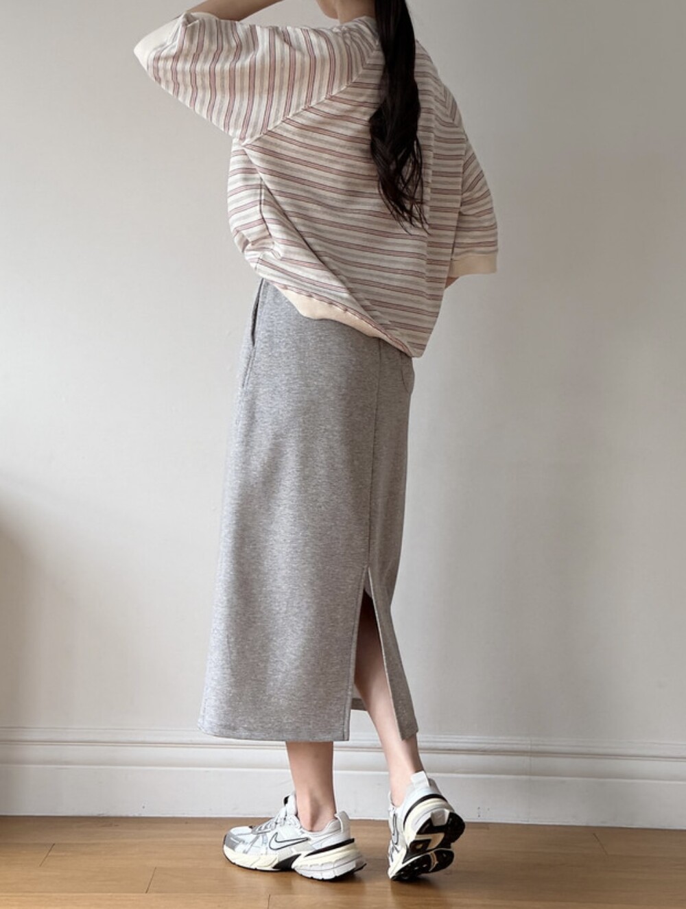 롱스커트 기장으로 하의 군살 커버